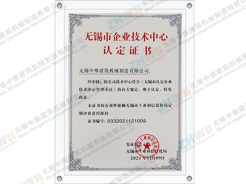 无锡市企业技术中心认定证书